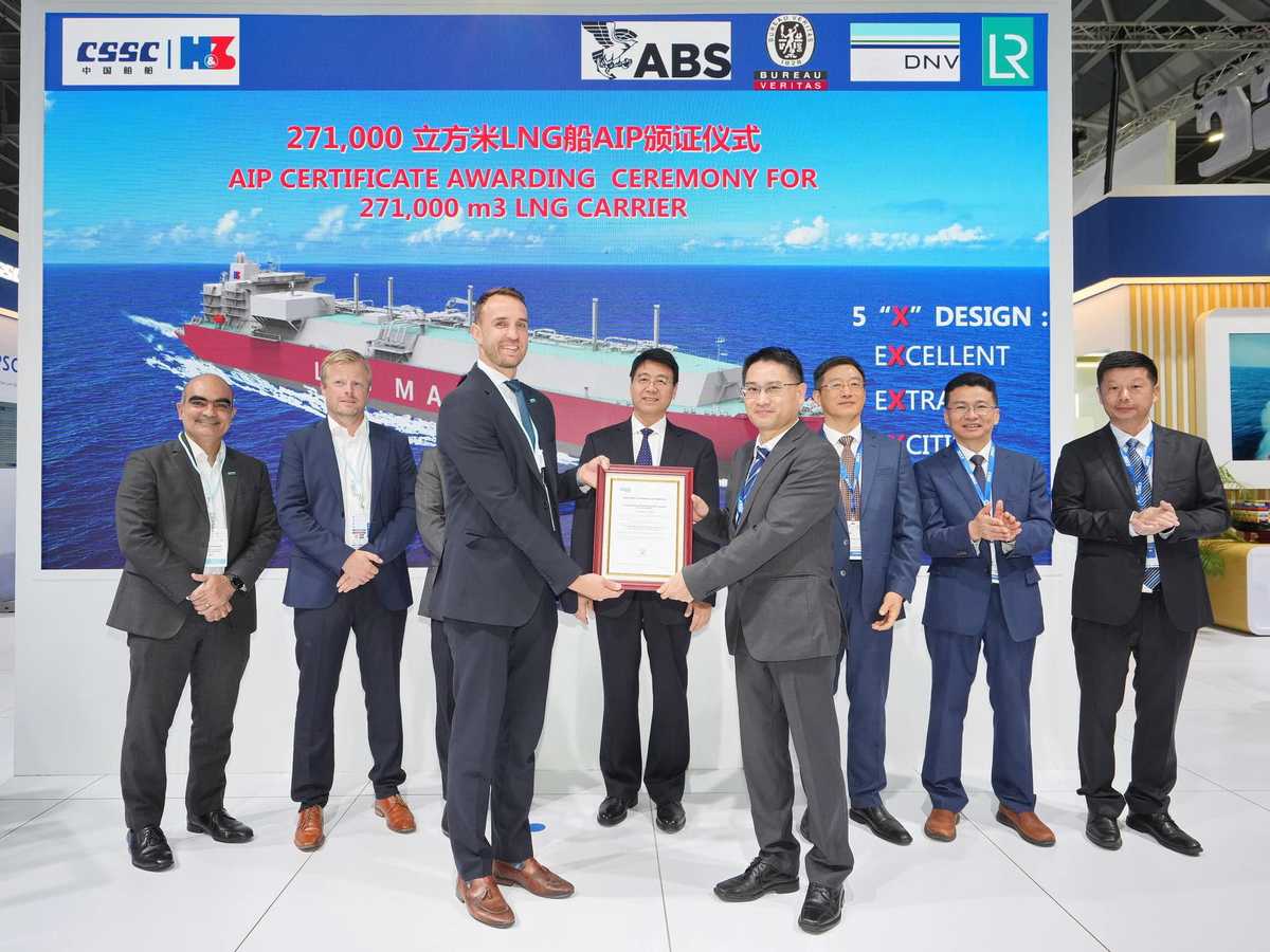 PHOTO: CSSC Hudong-Zhonghua Shipyard's team receiving AiP from DNV for its ultra-large LNG carrier. DNV