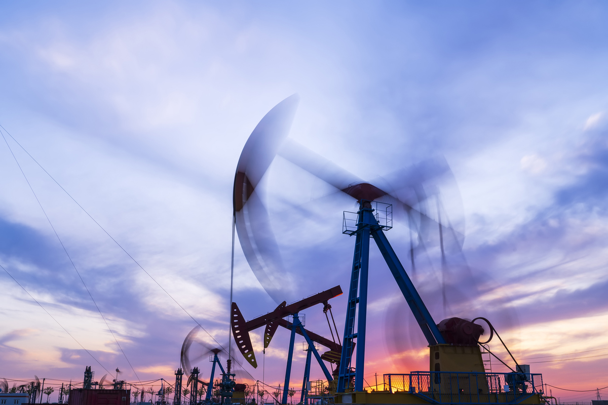 IMAGE: Crude oil pumpjacks. Getty Images