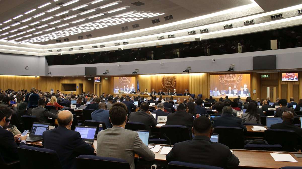 IMAGE: Representatives from member states at the IMO’s Intersessional Working Group on the Reduction of GHG Emissions from Ships meeting in London. X of @IMOHQ