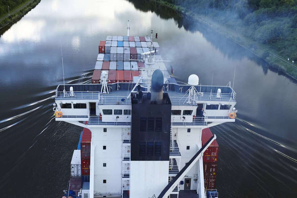 PHOTO: Exhaust gases flow from the funnel of a container feeder vessel. Getty Images