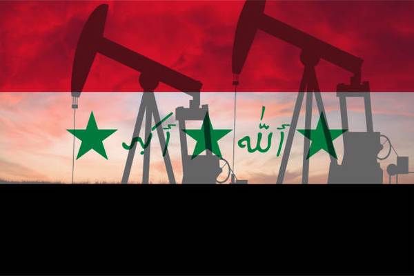 PHOTO: Oil pump jacks with Iraq's flag in the background. Getty Images