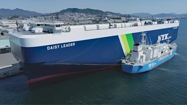 PHOTO: NYK Line’s car carrier Daisy Leader receives LNG stem from KEYS Bunkering West Japan’s (KEYS) bunker vessel, KEYS Azalea. KEYS