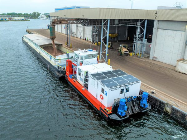 PHOTO: KOTUG's e-pusher tug in operations transporting cacao seeds in Amsterdam. KOTUG