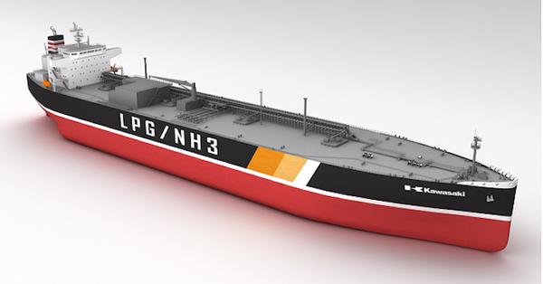 PHOTO: Concept design of the dual-fuelled LPG & liquid ammonia carrier. Kawasaki Heavy Industries