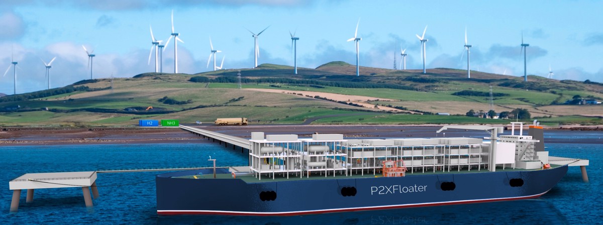 PHOTO: 3D Model of H2Carrier P2XFloater floating green hydrogen and ammonia production unit. H2Carrier