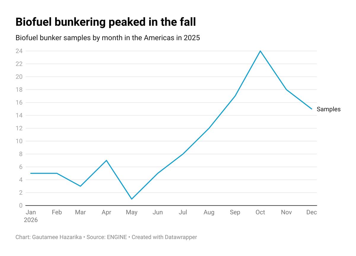 There were six samples from New York, which accounted for roughly 5% of total biofuel bunker activity in the Americas in 2025.