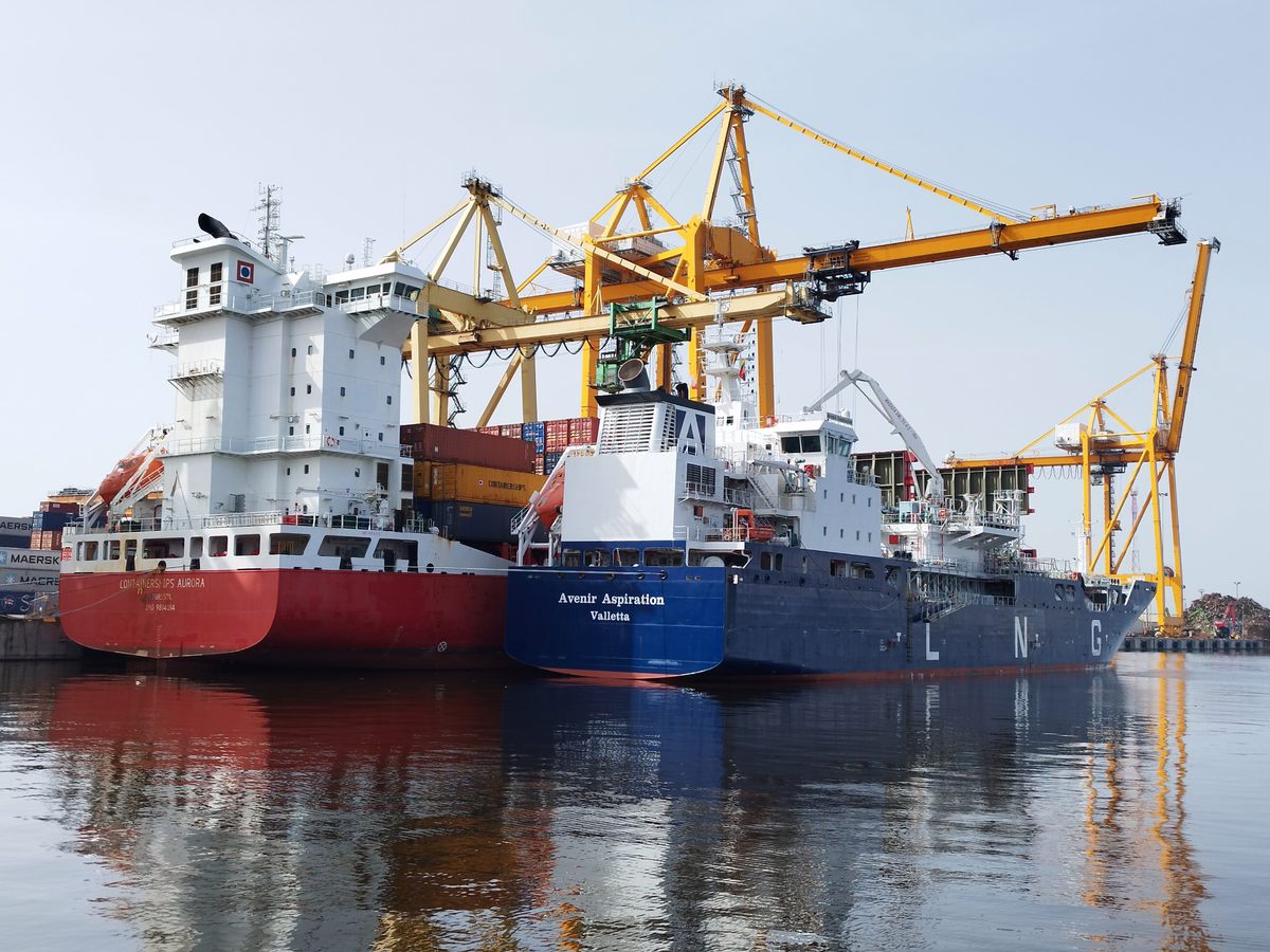 PHOTO: CMA CGM’s container vessel Containerships Aurora receiving LNG stem from Avenir LNG’s bunker barge Avenir Aspiration. Port of Klaipeda