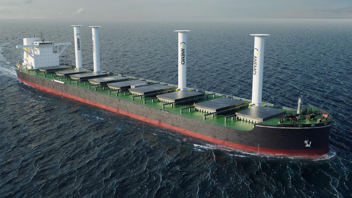PHOTO: A model of a newcastlemax bulk carrier with Anemoi's rotor sails fitted. Anemoi