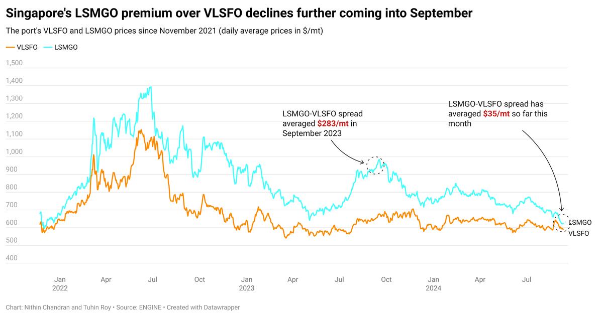 Another source expects tight VLSFO supply to continue through the first half of September. This could keep the LSMGO-VLSFO spread narrow over the coming weeks.