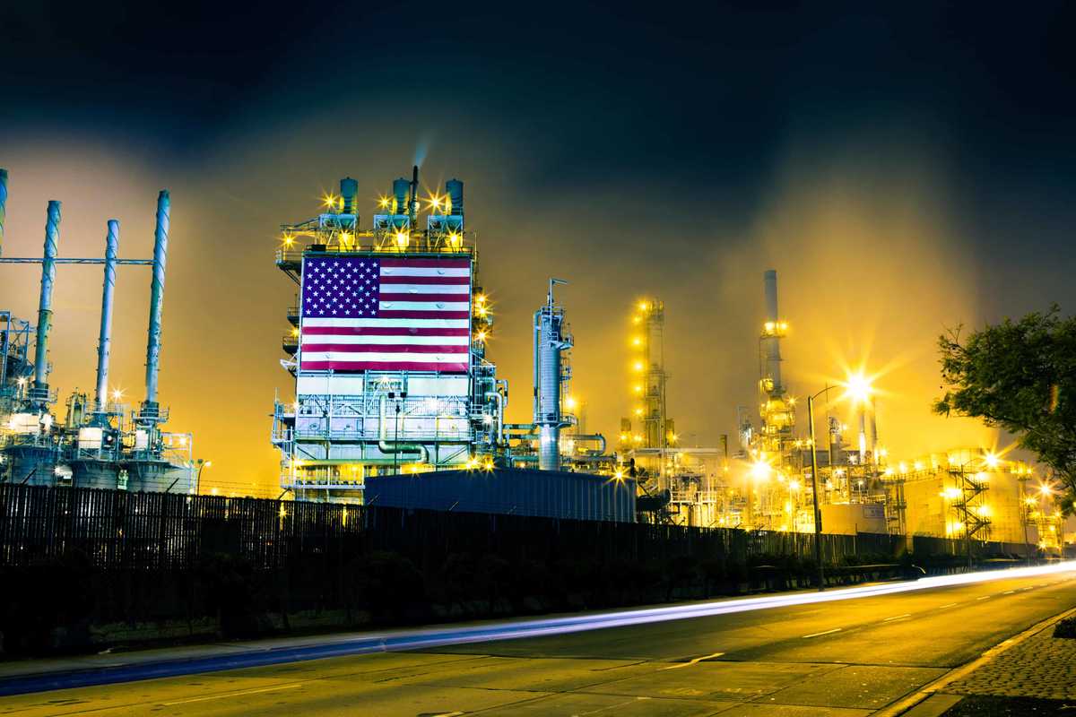 PHOTO: US Flag on an oil refinery. Getty Images