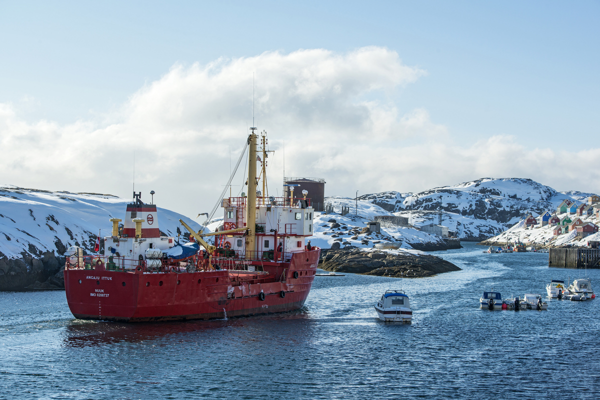 IMAGE: Freight vessel Angaju Ittuk approaching Kangaamiut in Western Greenland. Getty Images