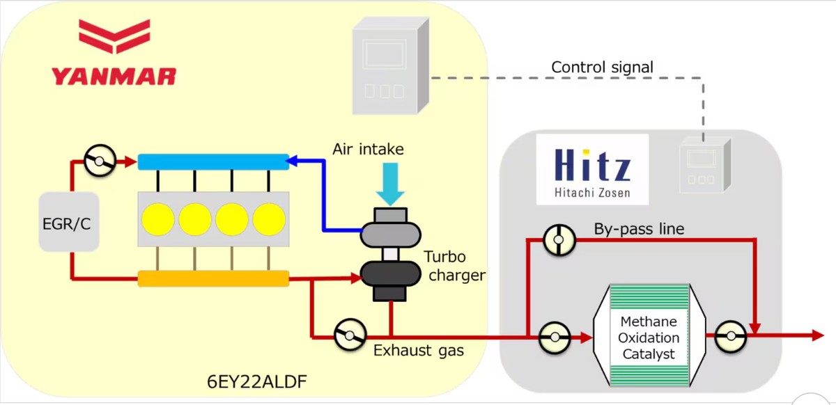 IMAGE: Process flow of methane slip reduction system. Yanmar