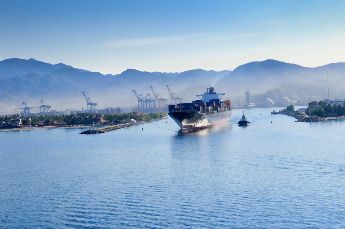 PHOTO: A container ship leaving the Port of Manzanillo, Mexico, with a tug boat. Getty Images