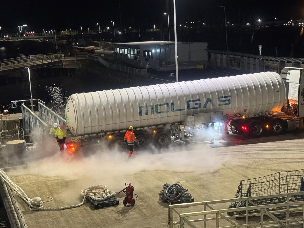 IMAGE: Molgas' truck delivering LNG to MV Glen Sannox. LinkedIn of Molgas