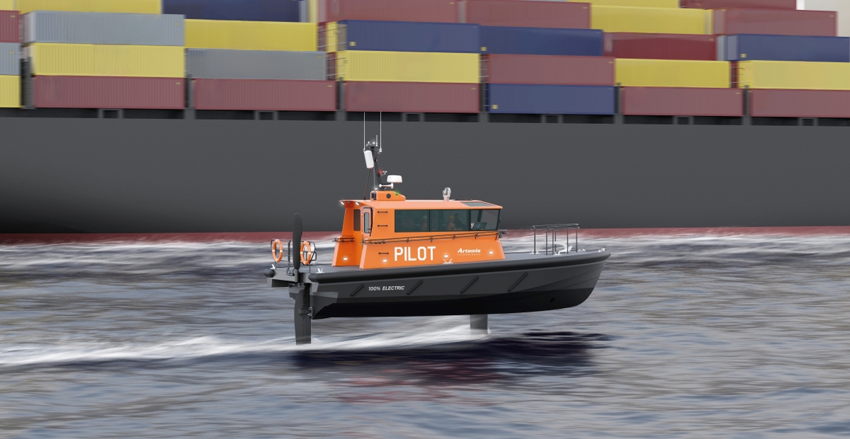 The Artemis EF-12 pilot vessel features an electric propulsion system and can be fully charged in just 60 minutes. It uses hydrofoils to lift its hull above the water, which reduces drag and improves energy efficiency, according to Artemis Technologies.