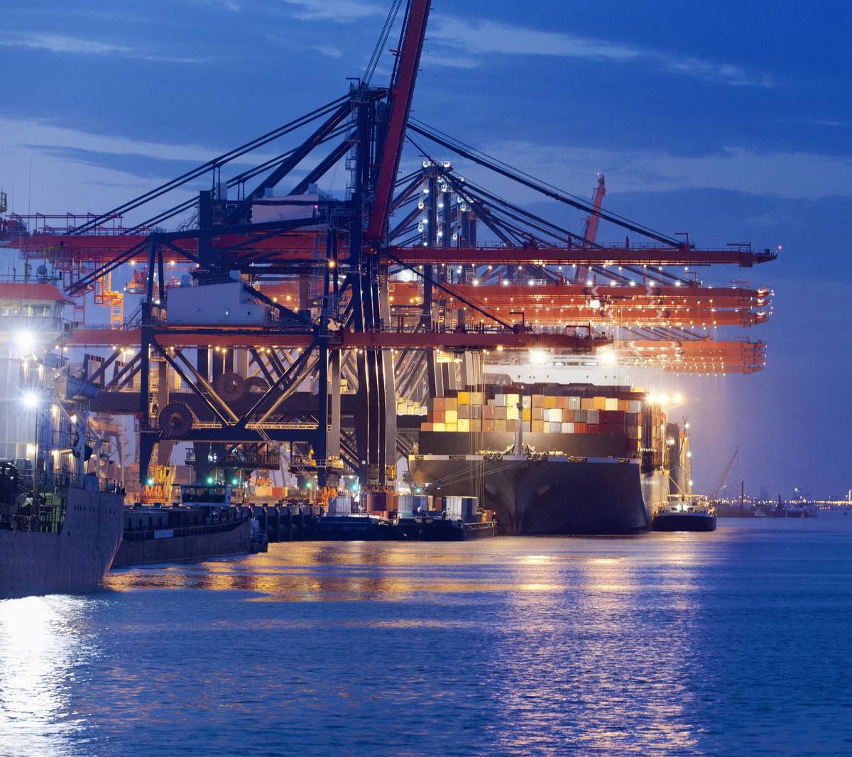 IMAGE: Container ship moored in a commercial dock at night in Rotterdam, Netherlands. Getty Images