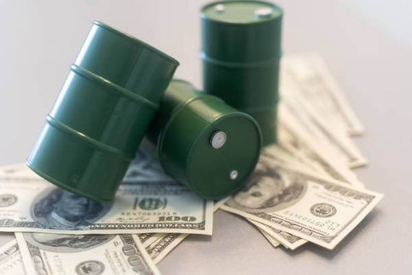 PHOTO: Green oil barrels and US dollar bills. Getty Images