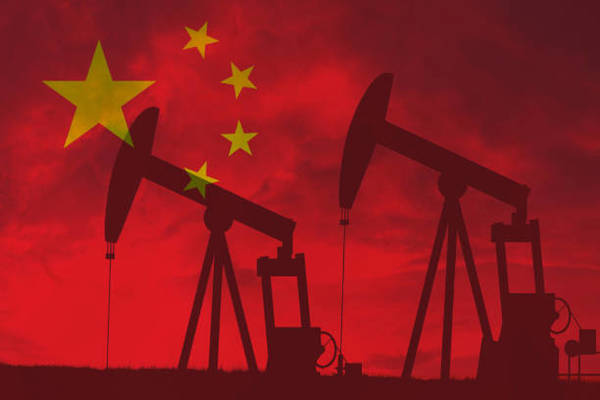 PHOTO: The Chinese flag with oil pumpjack silhouettes in the background. Getty Images
