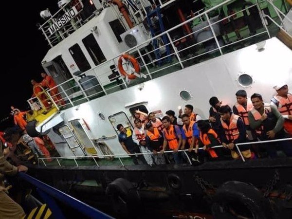 PHOTO: Rescued crew members from Philippine oil tanker Princess Empress. Philippine Coast Guard