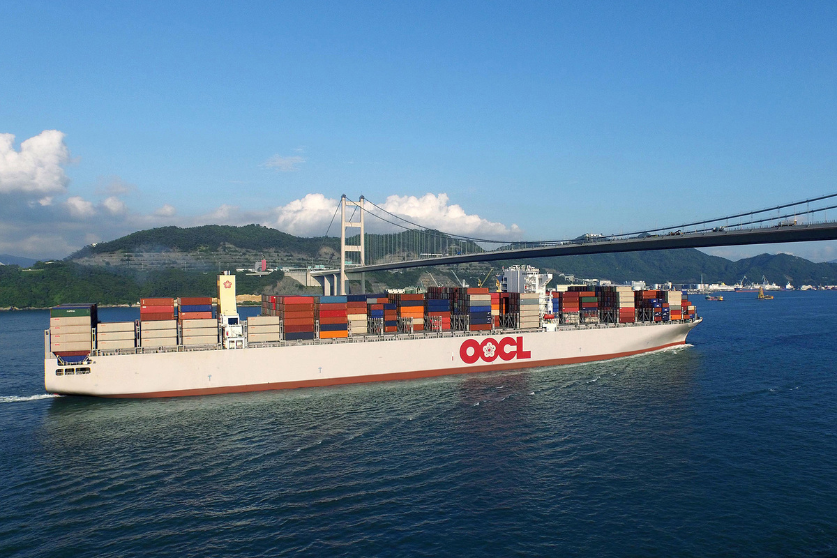 PHOTO: OOCL Berlin passing beneath the Tsing Ma Bridge, Hong Kong. OOCL