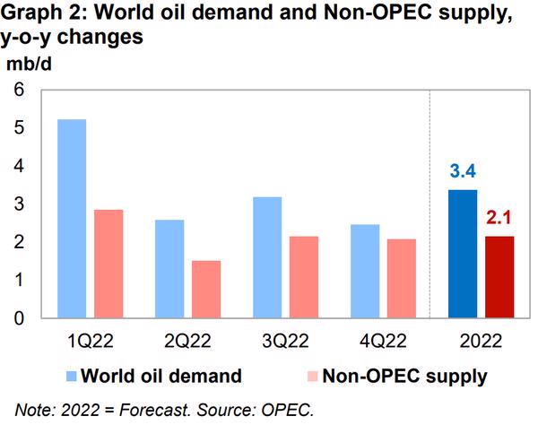 “Inflationary pressures are likely to persist and it remains highly uncertain as to when geopolitical issues may be resolved. Nevertheless, oil demand is forecast at healthy levels in the second half of this year,” OPEC says.