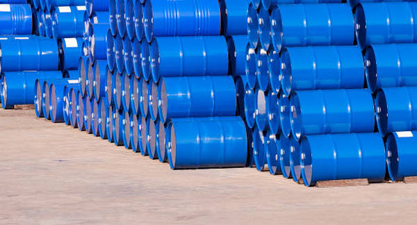 PHOTO: Blue crude oil barrels. Getty Images