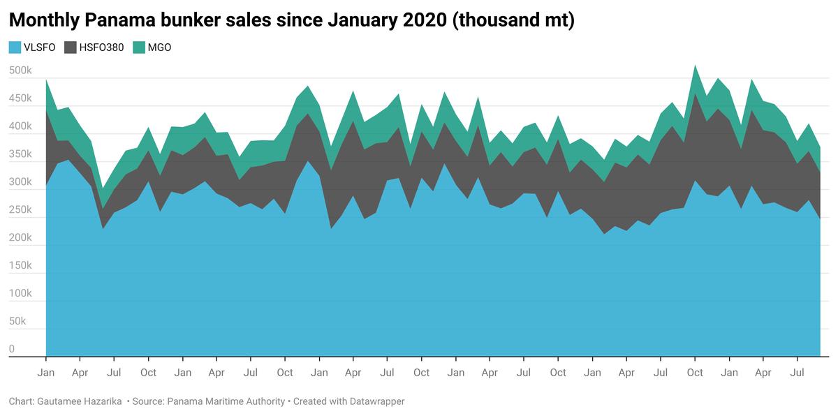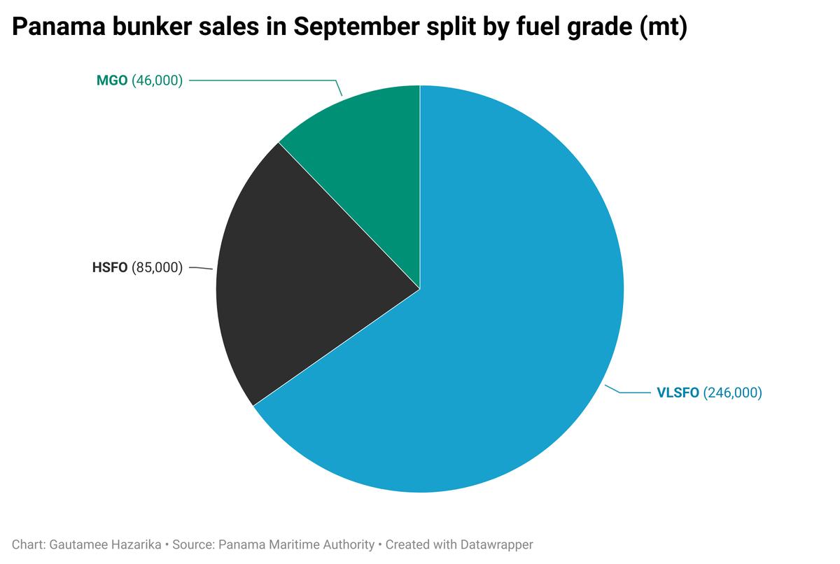 VLSFO continues to dominate Panama’s bunker market in September, accounting for around 65% of total sales.