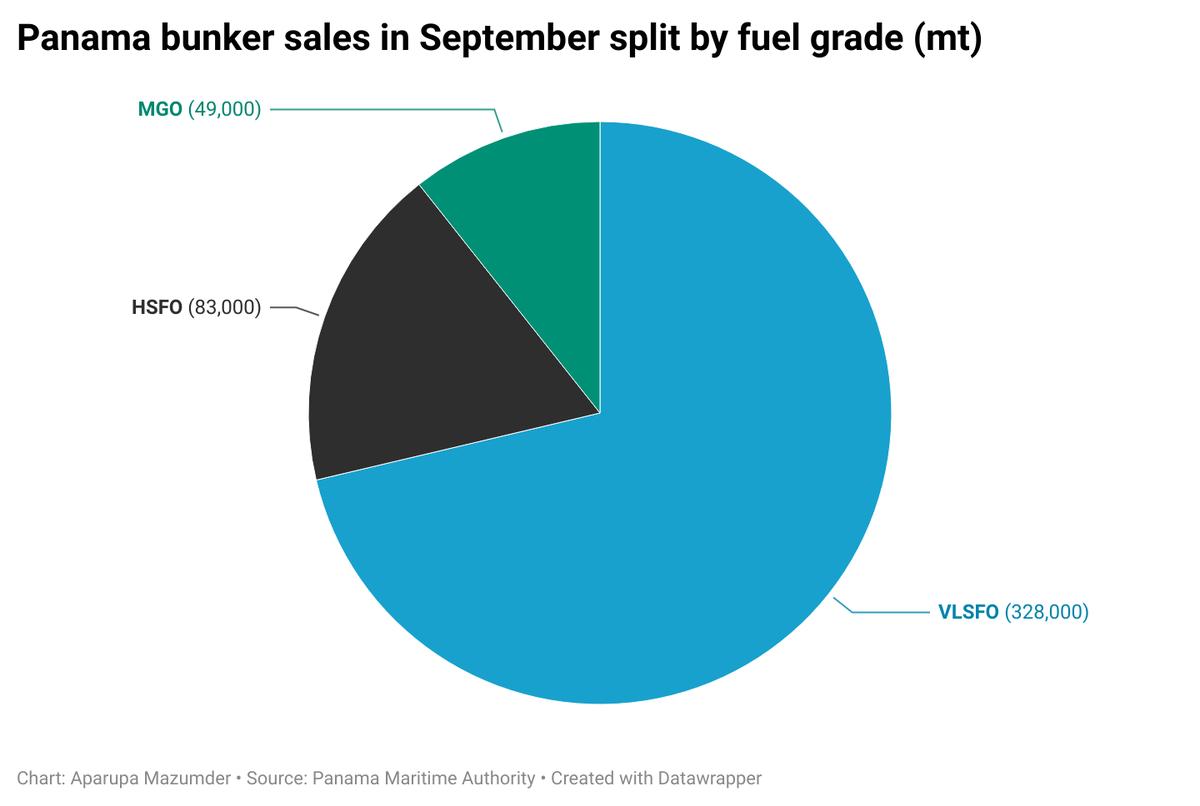 VLSFO continued to dominate Panama’s bunker market in October, accounting for around 71% of total sales.