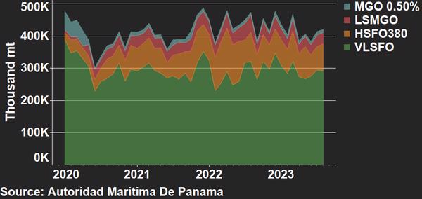 VLSFO continued to be the most sought-after product in August, and accounted for 70% of total sales in Panama. HSFO sales represented 19% of the total and combined MGO sales at 11%.