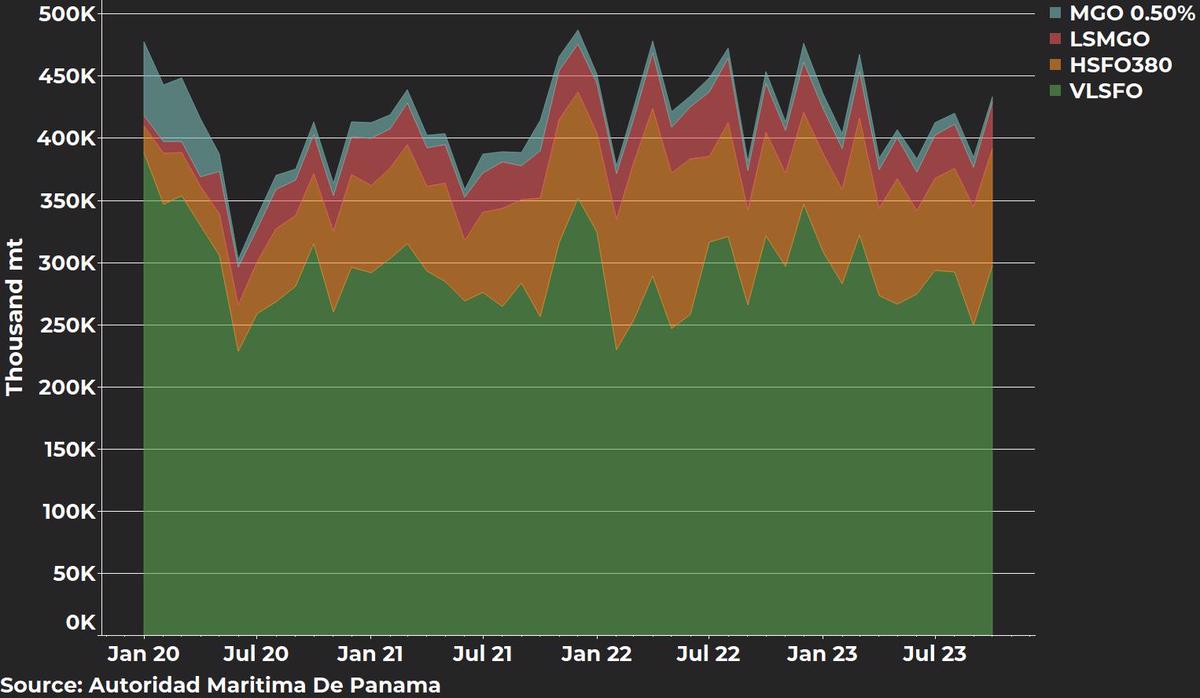 VLSFO continued to be the most sought-after product, accounting for 69% of total sales in Panama. HSFO sales represented 20% of the total, and combined MGO sales 11%.