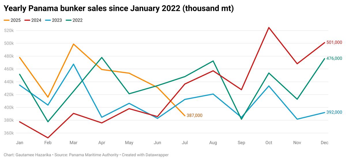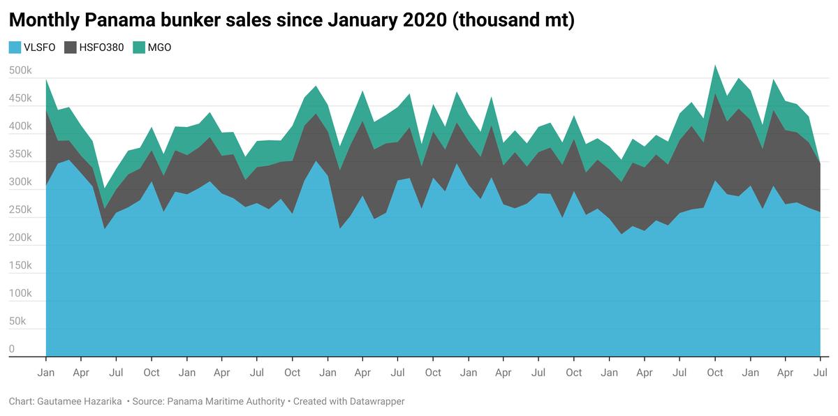 VLSFO continued to dominate Panama’s bunker market in July, accounting for around 67% of total sales.
