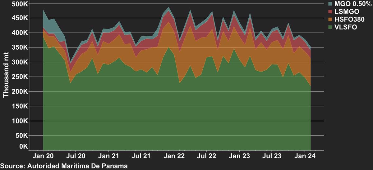 Panama's total bunker sales declined by 7% in February, largely influenced by a drop in vessels arriving for bunkers.