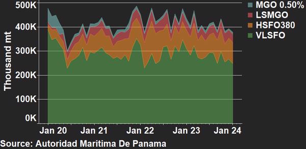Fewer vessels arriving for bunkers contributed to drag Panama's total bunker sales down by 4% in January.
