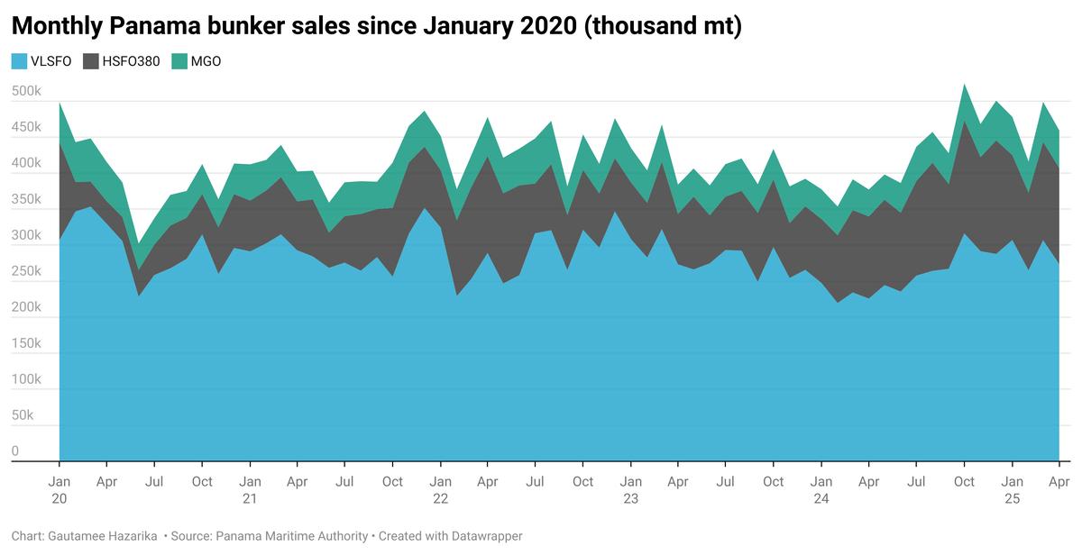 Panama's sales of VLSFO and HSFO fell in April, both on a total and daily average basis.
