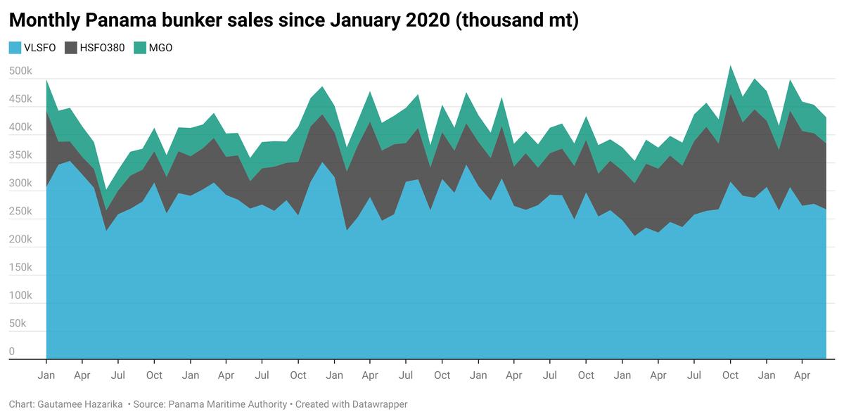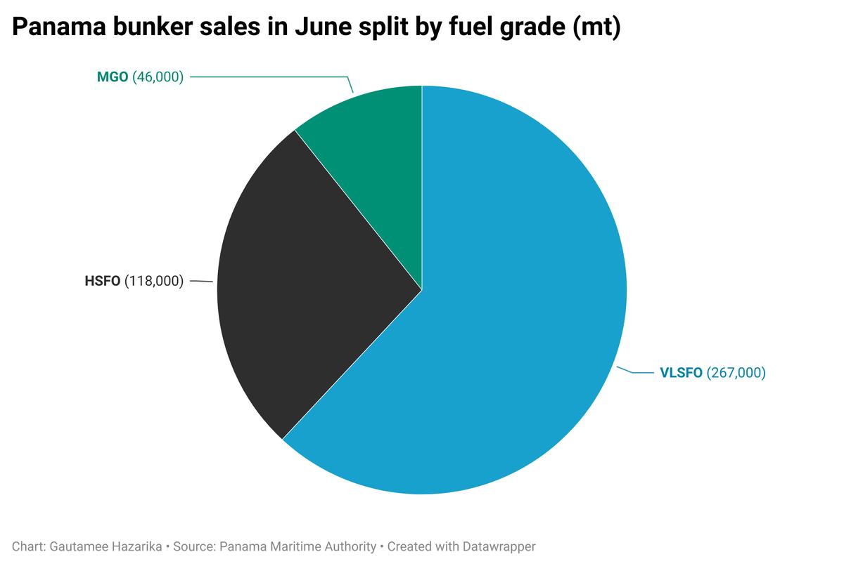 VLSFO continued to dominate Panama’s bunker market in June, accounting for around 62% of total sales.