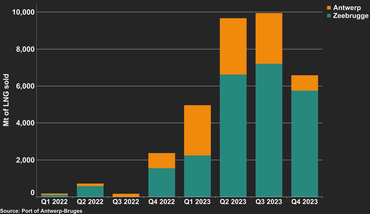 LNG bunker fuel sales in Antwerp-Bruges since Q1 2022