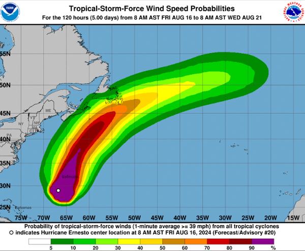 MAP: Tropical Storm Ernesto is near Bermuda. National Hurricane Center