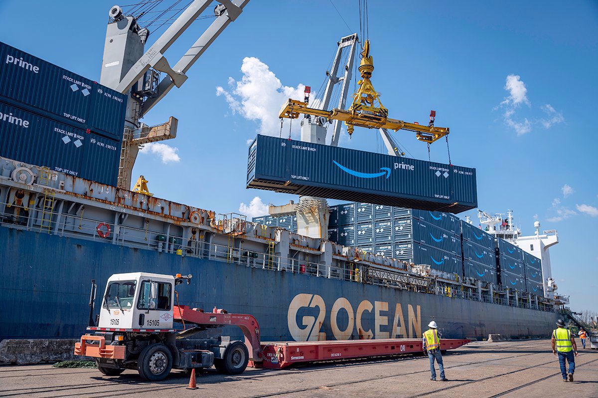 PHOTO: Ship carrying Amazon's containers. Twitter of @Port_Houston