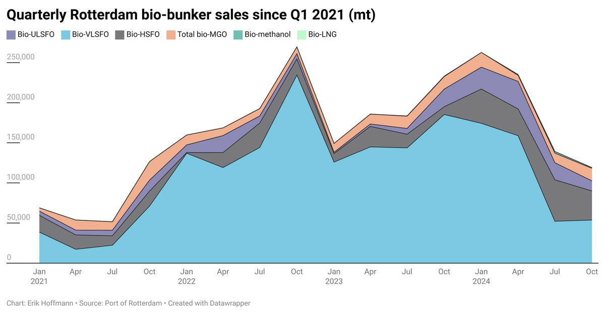 Changes in Rotterdam bio-bunker sales between 2023 and 2024: