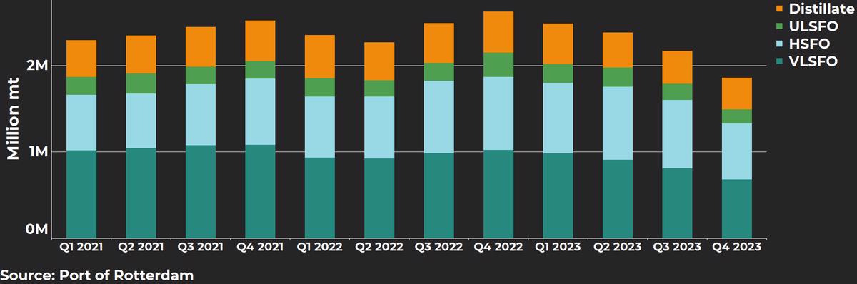 Rotterdam conventional bunker sales dipped by 9% in 2023