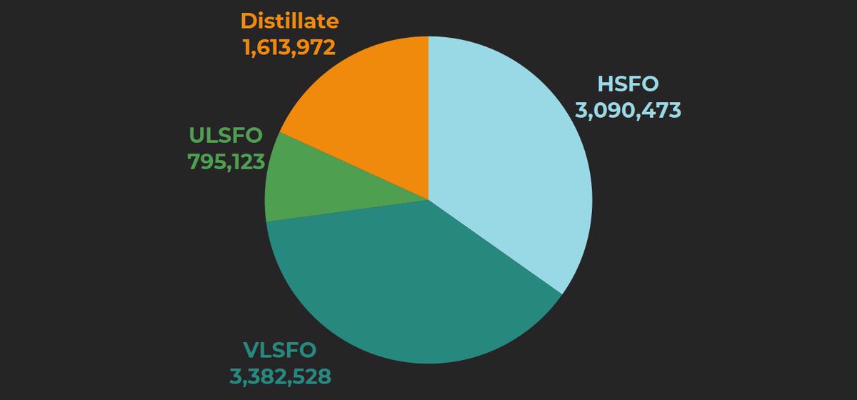 - VLSFO sales down by 476,000 mt to 3.38 million mt
