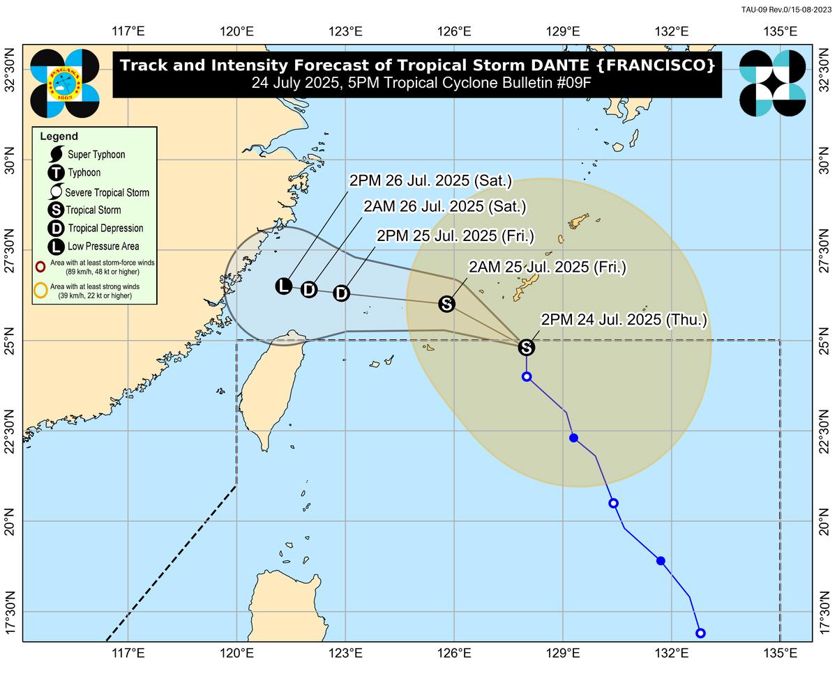 MAP: The projected path of Tropical Storm Dante as of Thursday. PAGASA