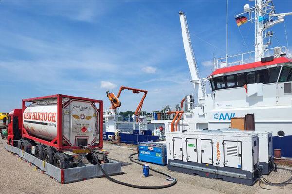 PHOTO: Royal Den Hartogh’s trucks delivering methanol blend to a vessel. Royal Den Hartogh