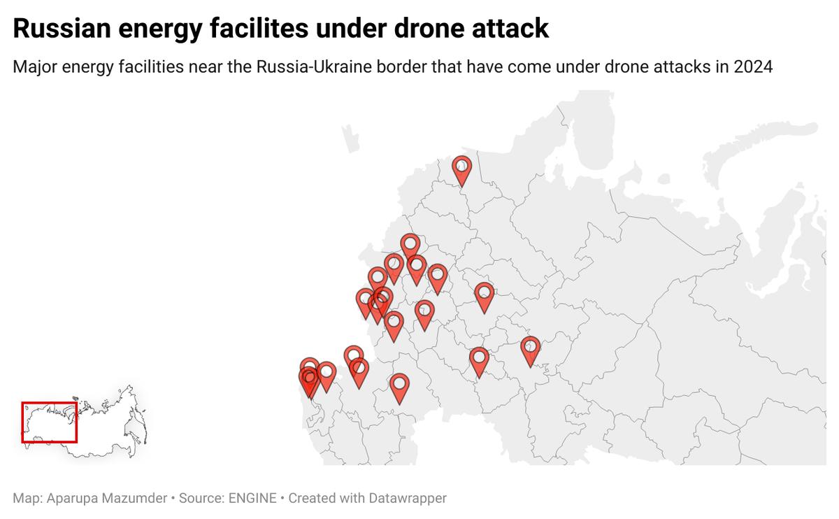 MAP: Several energy facilities in western Russia that have come under drone attacks. ENGINE