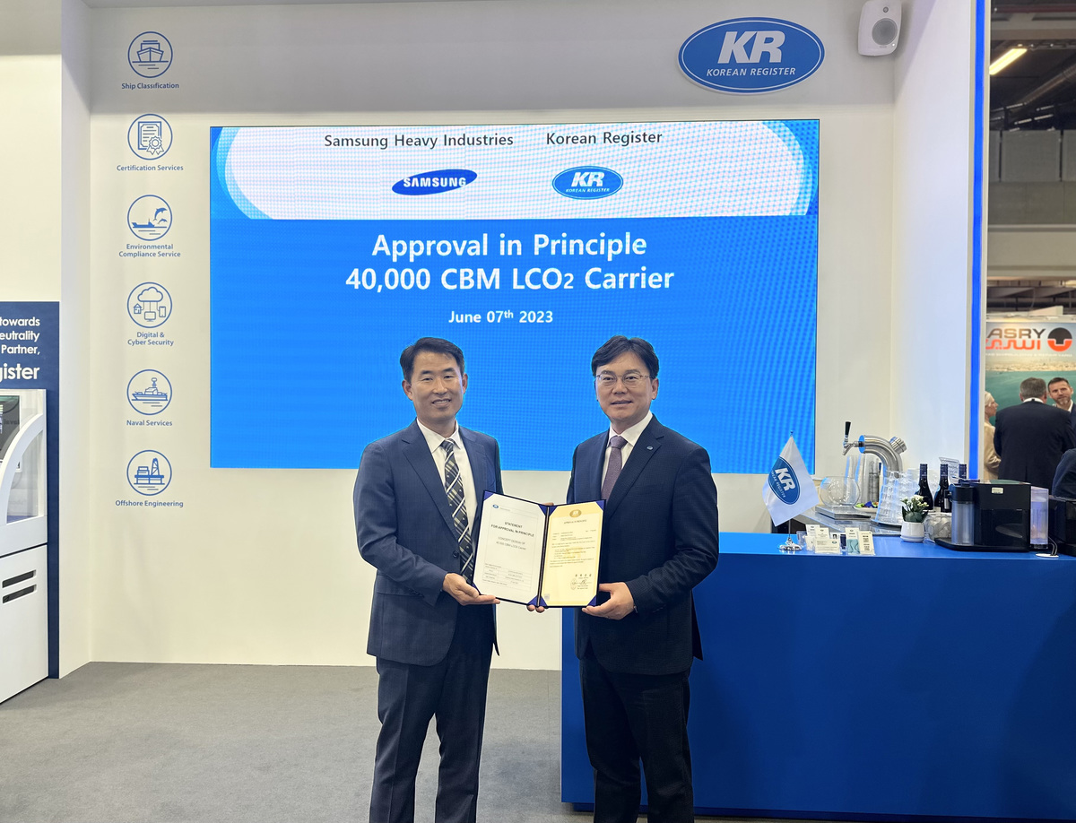 Korean shipbuilder Samsung Heavy Industries (SHI) has received approval in principle from classification society Korean Register (KR) for a liquefied carbon dioxide (LCO2) carrier.