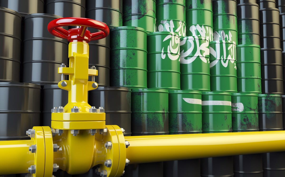 PHOTO: Oil pipeline valve in front of Saudi Arabia flag. Getty Images