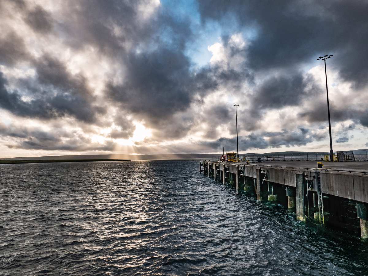 PHOTO: The sun bursts brilliantly through the clouds over a turbulent sea surrounding Hatston Pier, in Kirkwall, Orkney, Scotland. Getty Images