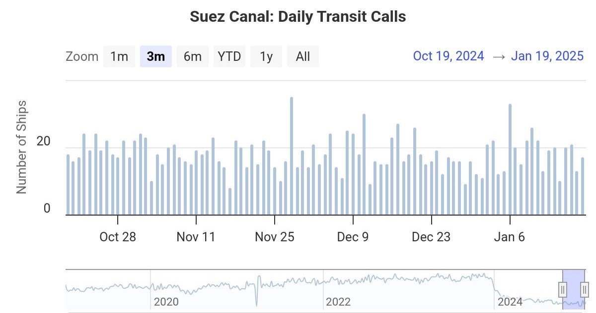 PHOTO: Daily cargo vessel transit calls from the Suez Canal in the past 3 months. IMF Portwatch