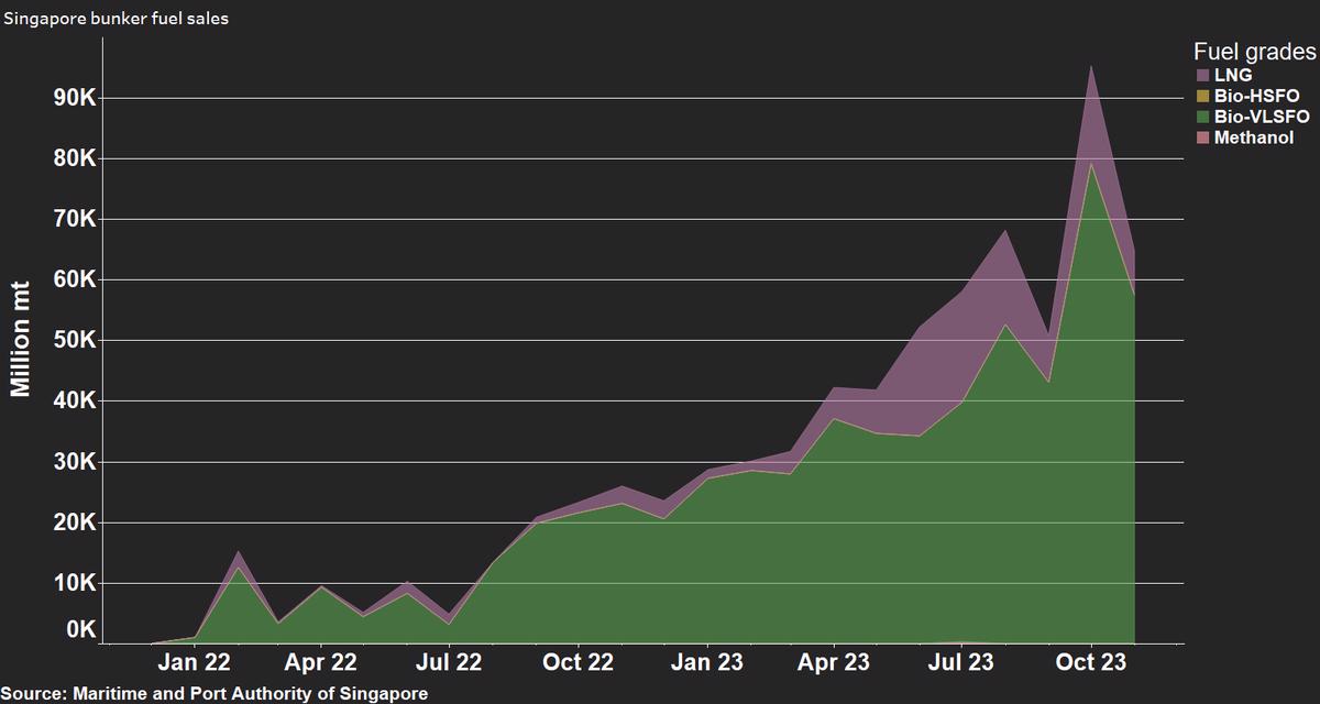Singapore bio-bunker and LNG sales fell in November