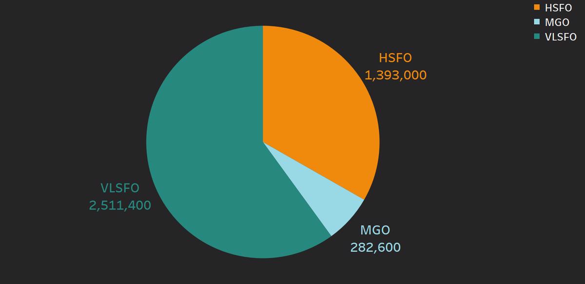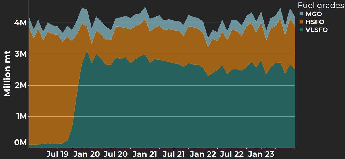- VLSFO sales down 154,000 mt to 2.51 million mt